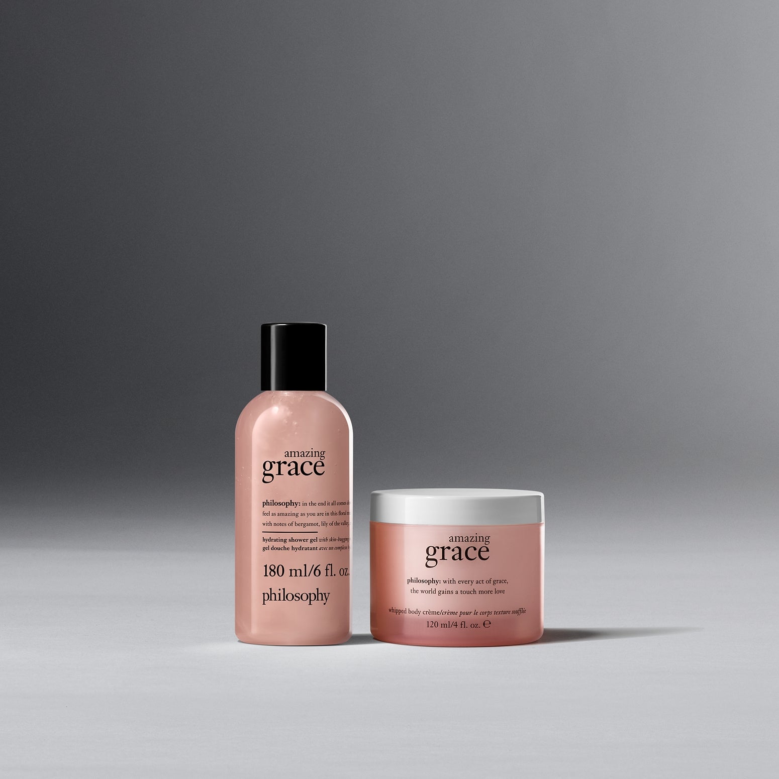 our exclusive nourishing formulas leave skin and hair ultra-clean, soft, and hydrated, while you enjoy our iconic scent. taking time for yourself feels amazing. includes: amazing grace hydrating shower gel, 6 oz amazing grace whipped body crème, 4 oz
